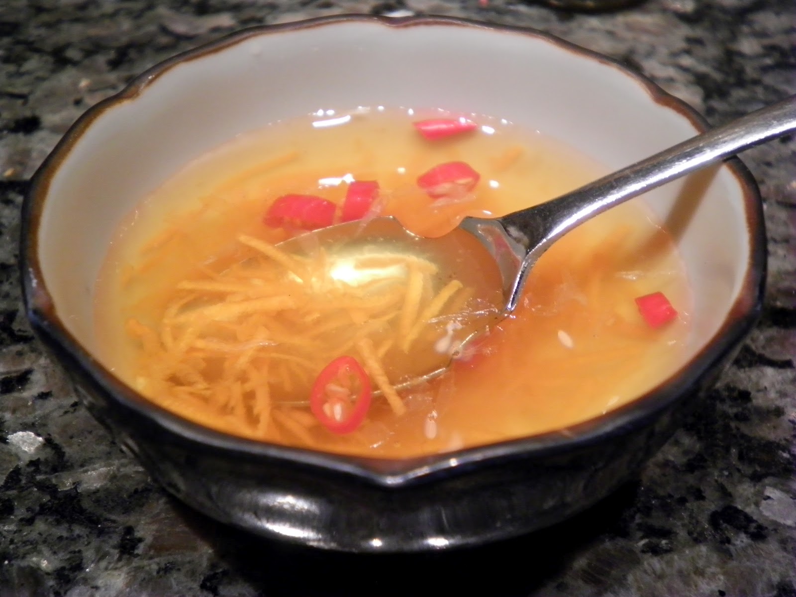 Now to the preparation. I’ve been making nuoc cham for so long a recipe isn’t necessary, but this was a test so I decided to use one. I selected author Andrea Nguyen’s recipe from her blog Viet World Kitchen because it has you start by making limeade. I had never thought of it that way, but that’s what the first few ingredients are. Per the recipe “as[k] yourself this question: Does this limeade taste good? Adjust the flavors to balance out the sweet and sour”. The basics of being certain the foundation is appetizing before adding the fish sauce. Cool.