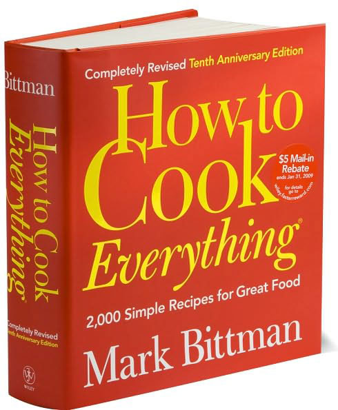 While those remain good choices, these days my selections are different. Time has passed and the cooking world is not remained static. For the advanced cook I would choose Julia and Jacques Cooking at Home. For an international cookbook it would be David Rosengarten’s Dean and Deluca Cookbook (wouldn’t mind an update – stuff is more familiar and). For an all-purpose cookbook, and my selection for this first blog post, it is How To Cook Everything by Mark Bittman.