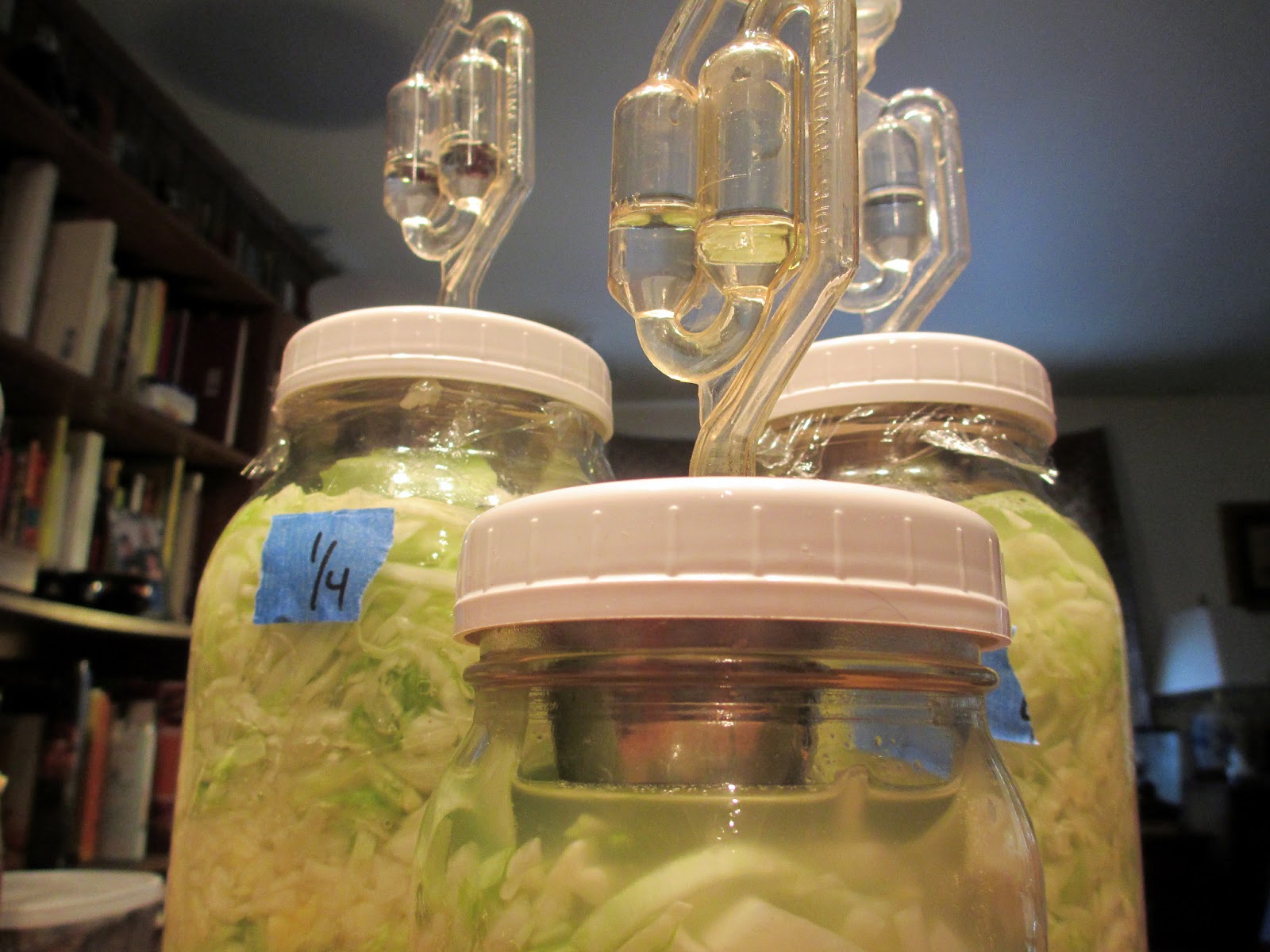 In addition to sauerkraut I have made several types of cucumber and tomato pickles, and a wonderful batch of kimchi. And vinager via some “toilet wine”.