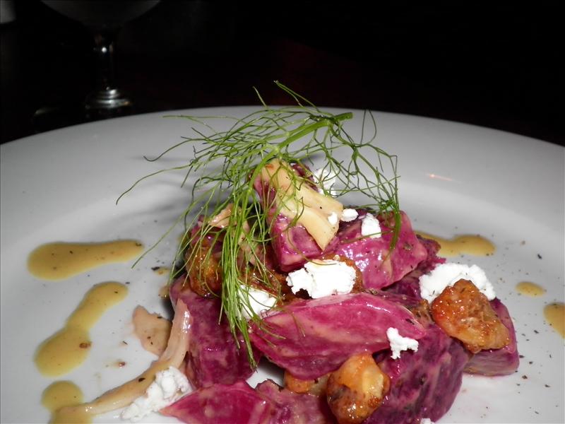 Another is those little things a kitchen can do to show you are not an imposition. Trish and I are not appetizer people, unless we are making a meal of them, but the beet salad on the menu just sounded seasonal and good. We asked to split it and would have been happy to have a plate placed between us. When the server came back (and she was good) it was with two perfectly arranged plates with a half order on each. Nice touch.