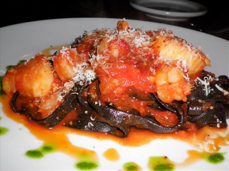 Of course one must deal with with the entrees. Trish had the Squid Ink Tagliatelle. It was lovely. It is so easy to overcook small seafood. I, of course, had the boar off the specials menu (below). I had been prepared for some gaminess, but there was none – only a rich porky flavor. Anyone who has ever dined with me knows how little I eat. I can live for a week on the leftovers. There was barely a morsel left on the plate.