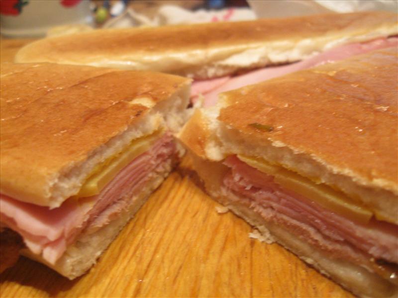 Of course, the dilemma now was what to do with leftover ham and roast pork. Easy call. Cuban Sandwiches. Ham and pork, thinly sliced, Swiss (I actually prefer Jarlsberg), and a dash of mayo (sometimes a tad of mustard). I don’t own, nor do I want, a pannini press. A cast iron pan with another on top works fine.