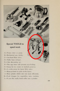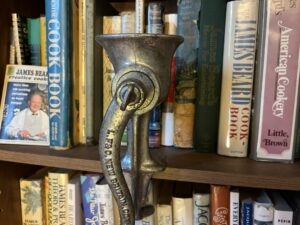 One warning: don’t use a meat grinder. I thought Mabel’s suggestion a brilliant time saver in this pre-food processor world. I have the type of antique grinder used by Mabel, but it is only used as a bookshelf decoration. I have other choices, and picked the KitchenAid attachment rather than the manual. It was a disaster. I gave up and used the food processor – because I can.