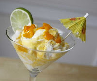 So I traveled to his house, mixer and some glassware in hand, to make Fools. Andrew had the mango one made, but more work was ahead. I made a second trip home and back because his daughter Zoe had the brilliant idea of not just serving them in a cocktail glass, but making it look like a cocktail. I had paper umbrellas, and little sippy straws. I also had to make a stop at the Wine Cellar, where I knew they carried those cute little bottles of Cointreau that so resemble the Holy Hand Grenade of Antioch.