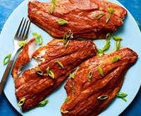 the marinated fish, skin side down. Reserve the remaining marinade.