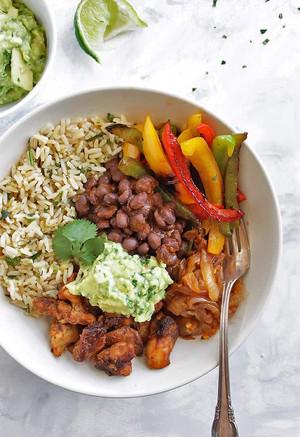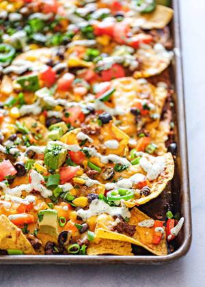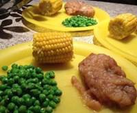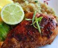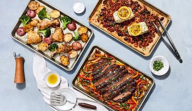 chicken and vegetables to plates. Spoon yogurt onto sheet pan and