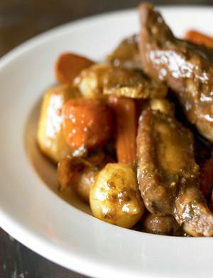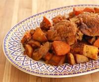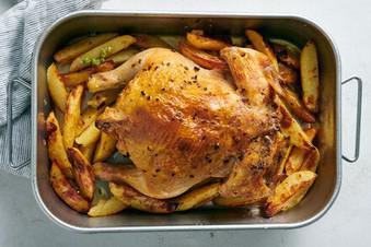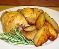 edges and turn potatoes cut-side down. Roast at 425°F until chicken