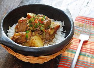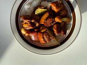 vinegar, achiote paste, garlic, onion, cloves, allspice, pepper and