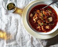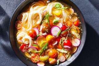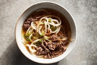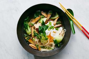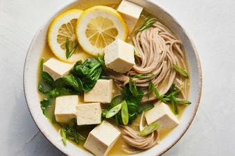Divide the soba among four bowls. Ladle the broth, spinach and tofu
