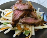 cool, and slice lengthwise into ½-inch-thick slices. Season with the