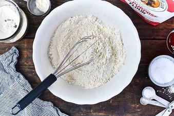 Combine flour, sugar, baking soda, salt, nutmeg and cinnamon together