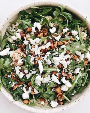Whisk together the lemon zest, juice, honey, olive oil, salt, and