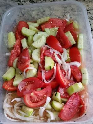 oil, lemon juice, za'atar, chicken and vegetables in ziplock bag.