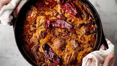 until chiles rehydrate, soften and plump up, about 10 to 12 minutes.