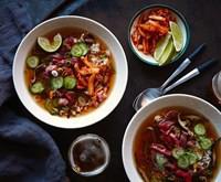 over the noodles. To serve, squeeze over some lemon juice, top with a